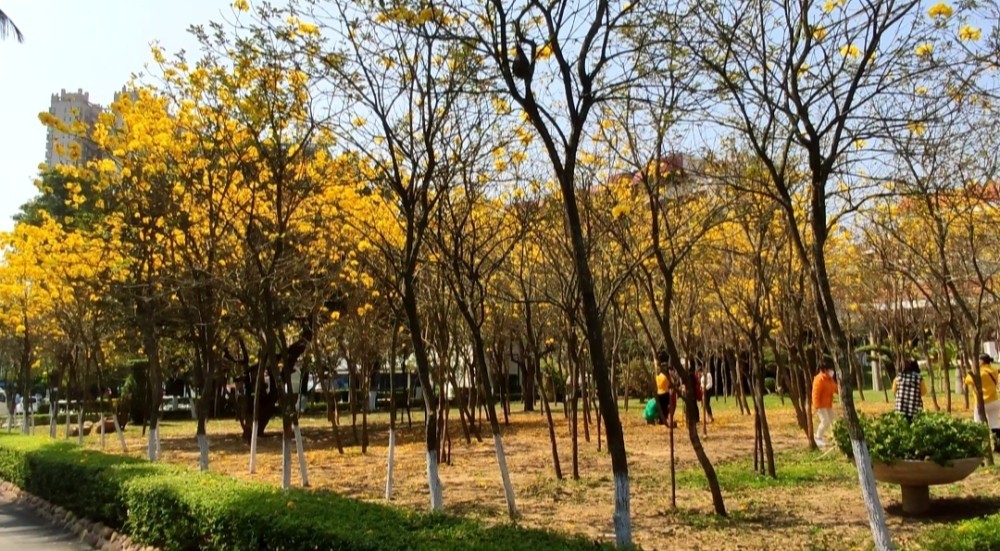 2. 湛江东海岛:东海岛上的黄花风铃木观赏区,景色优美,是春季赏花的好去处。