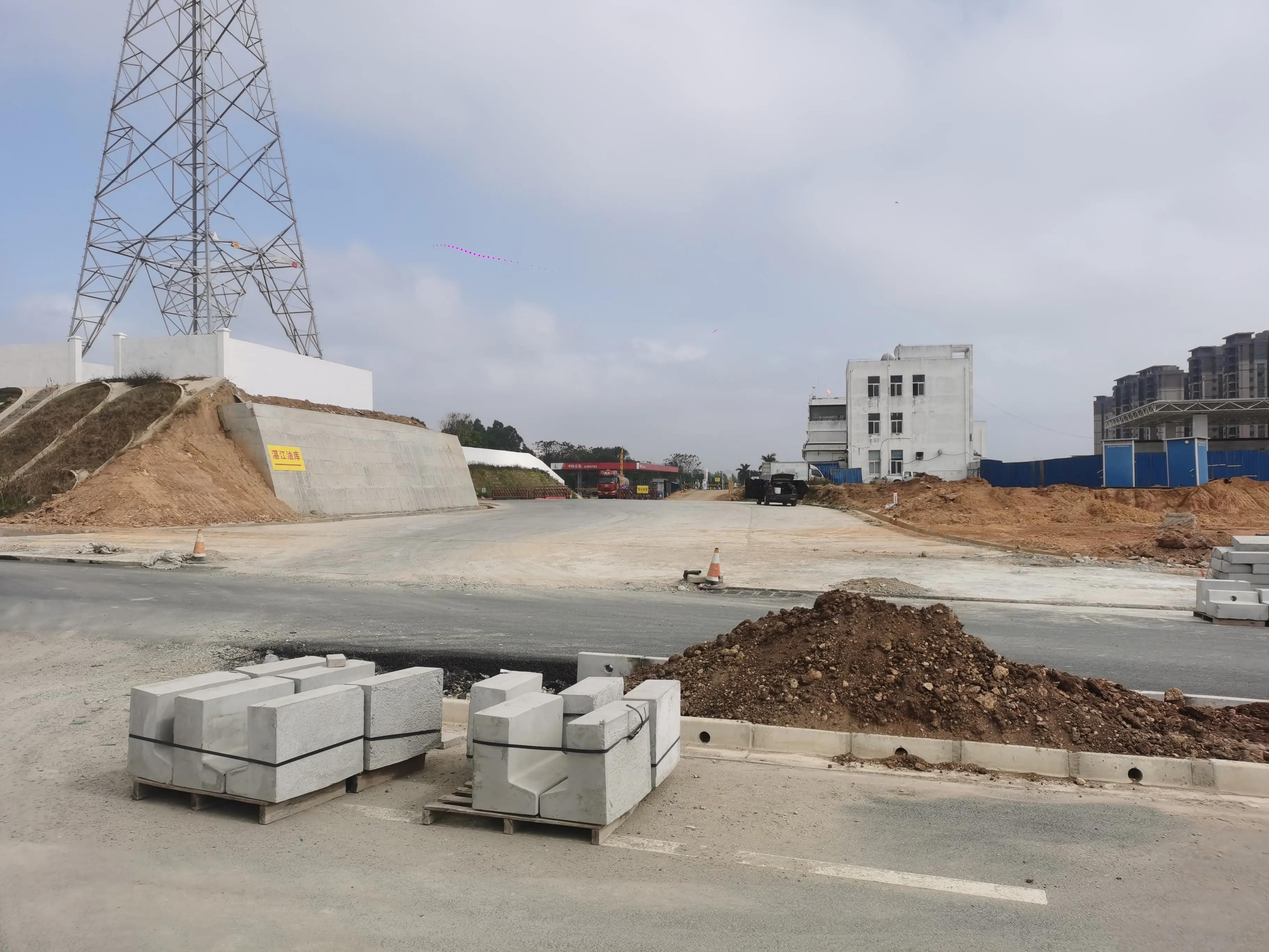 湛江大道南侧起始段二十多天以前就开始铺设沥青混凝土路面了。