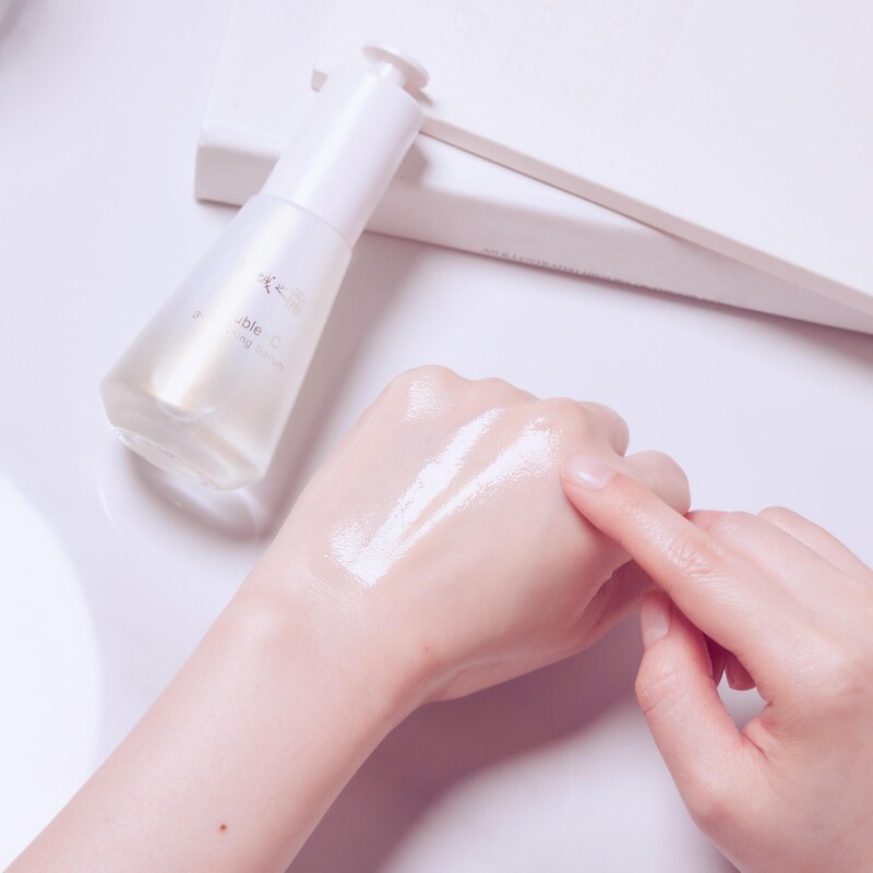 好险让我等到这瓶「双C光透美白精华」,轻透如水的质地,好延展又清爽好吸收,用在脸上完全不黏,也没有维C产品常见的黏腻感。而且无添加酒精、酸类、硅等成分,敏弱肌也能放心使用,M编当然要用爆啊!