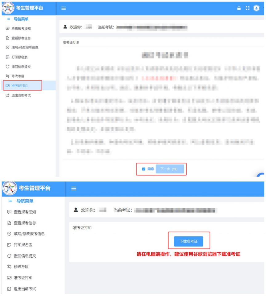 6. "确认打印": 在打印之前,请仔细检查准考证上的信息是否准确无误,确认无误后再进行打印。