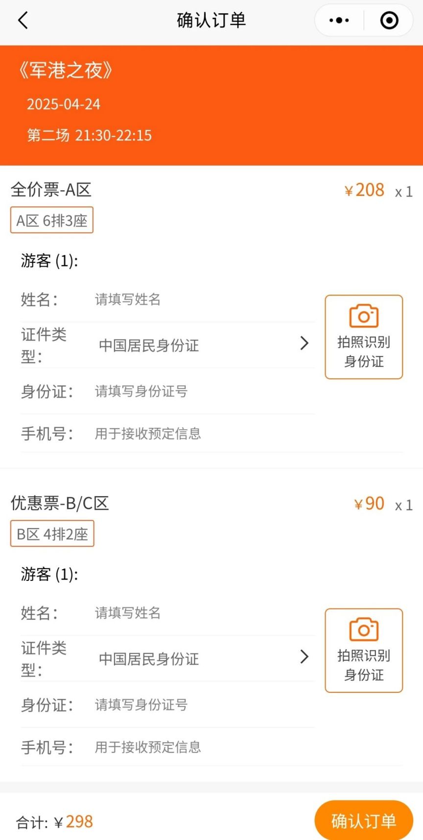 填写相关信息,岁数信息不符将无法下单哦!完成支付、建议截图保存二维码凭证至相册,届时可快捷扫码入场(一人一票一码)或在小程序“我的”“我的订单”找回二维码