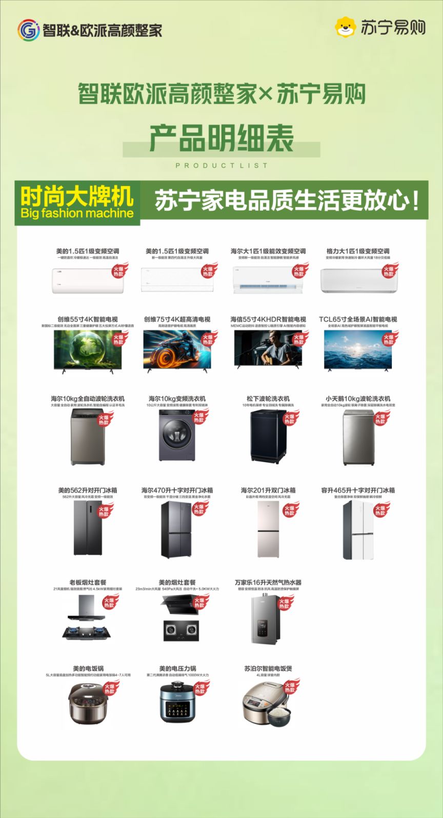 02补贴品牌美的、格力、海尔、小天鹅、松下、容声、创维、TCL、海信、老板等国内外各大品牌厂家产品。