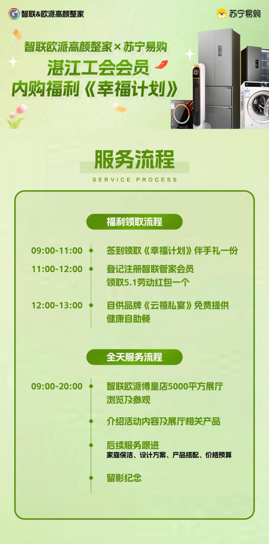 湛江市总工会x智联&欧派高颜整装x苏宁电器联合开展湛江工会会员《幸福计划》第二波专场活动重磅来袭!